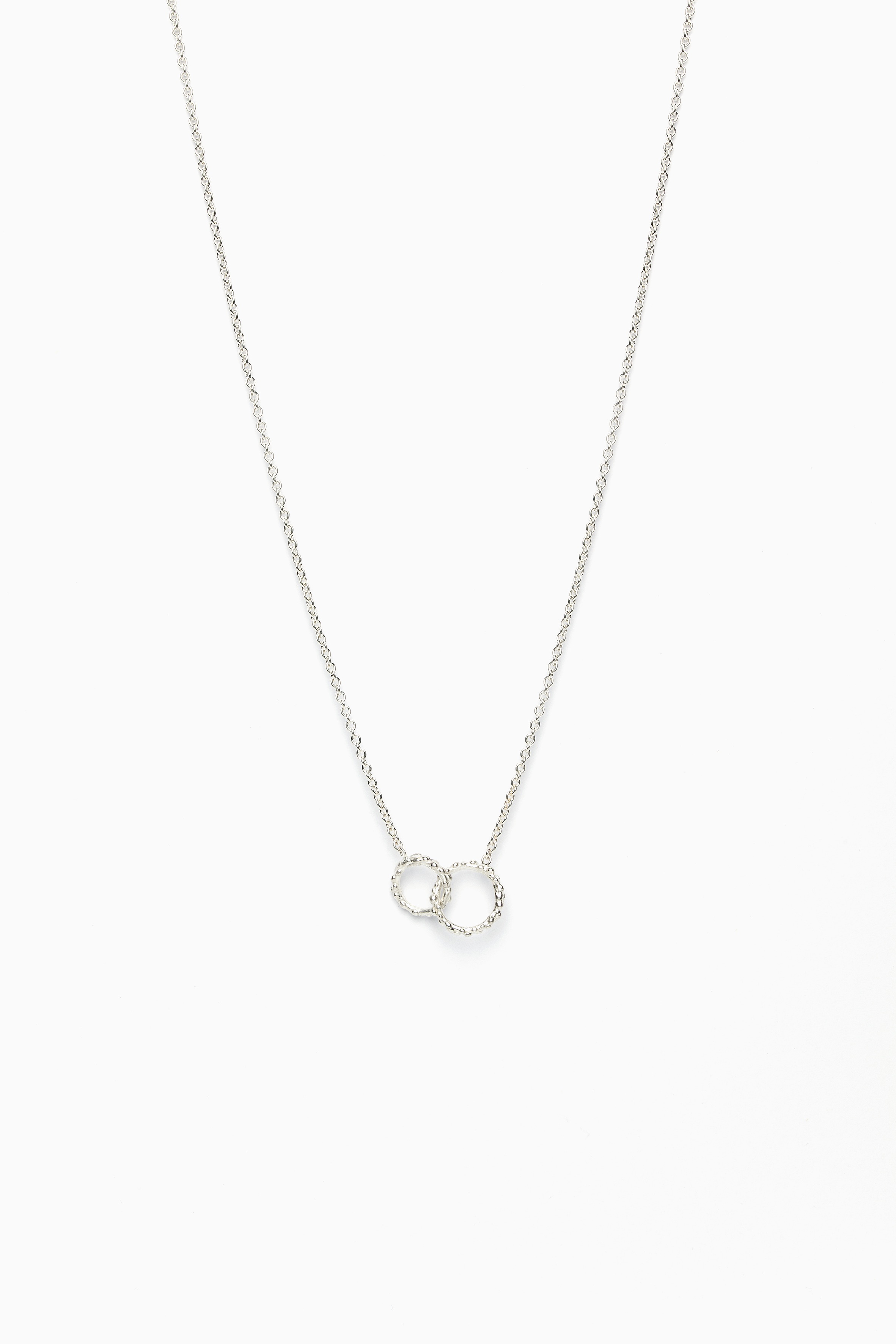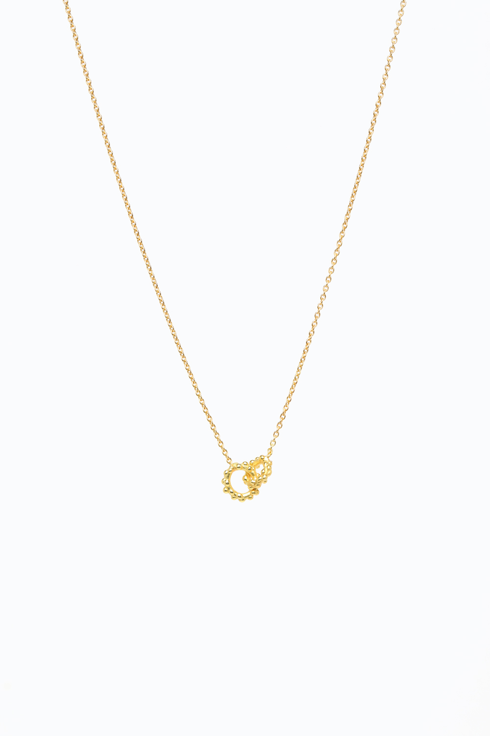 Zwei ineinander verschlungene Goldglieder, vollständig aus recyceltem Gold (18kt.) gefertigt und mit Sarah Cosshams charakteristischer Textur aus feinen Champagnerperlen.