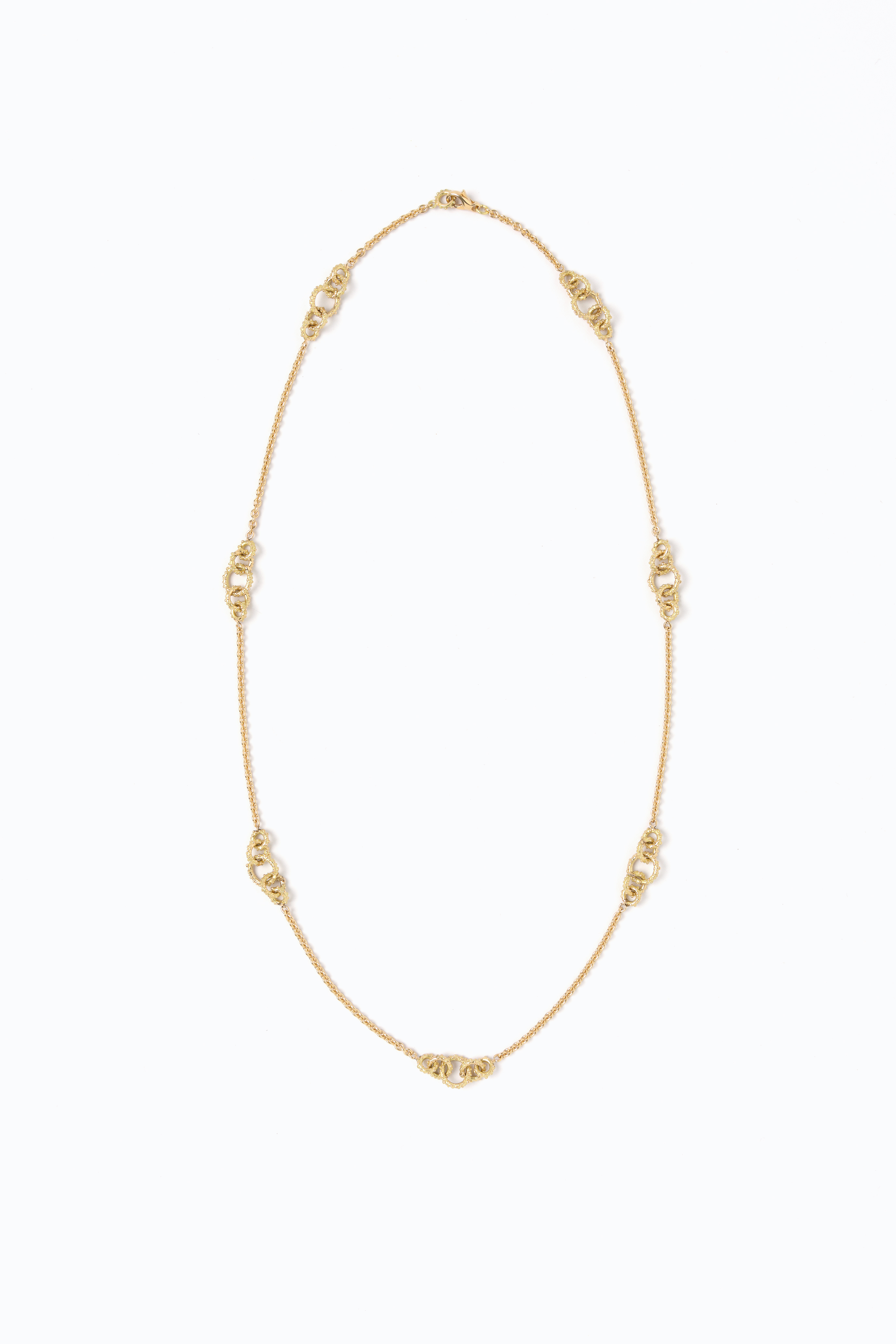 Interlocking links, crafted entirely from 18kt. recycled gold or silver and finished with Sarah Cossham’s signature texture of fine champagne-like bubbles.