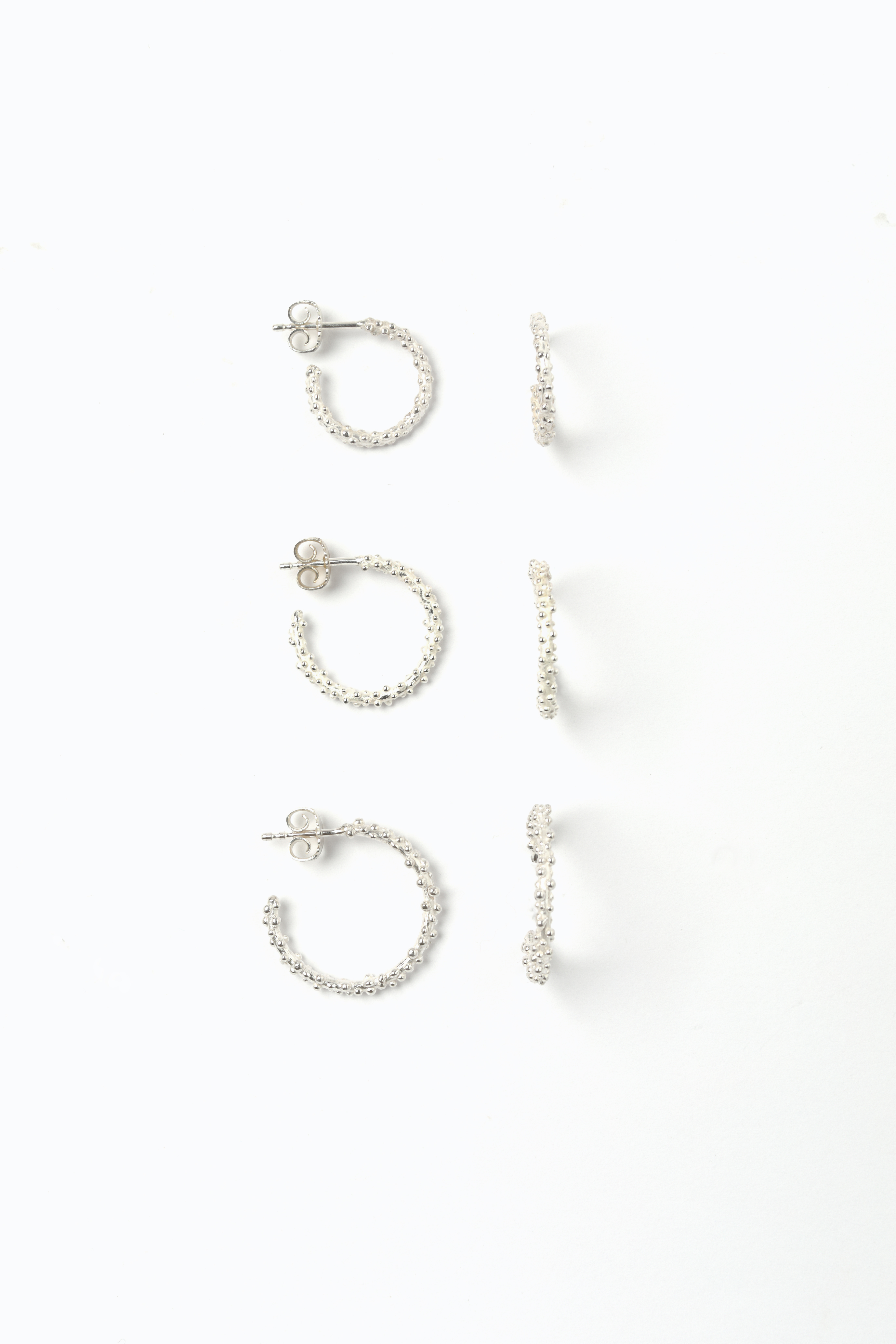Creole earrings handmade from recycled materials and refined with Sarah Cossham’s signature texture of fine champagne pearls.