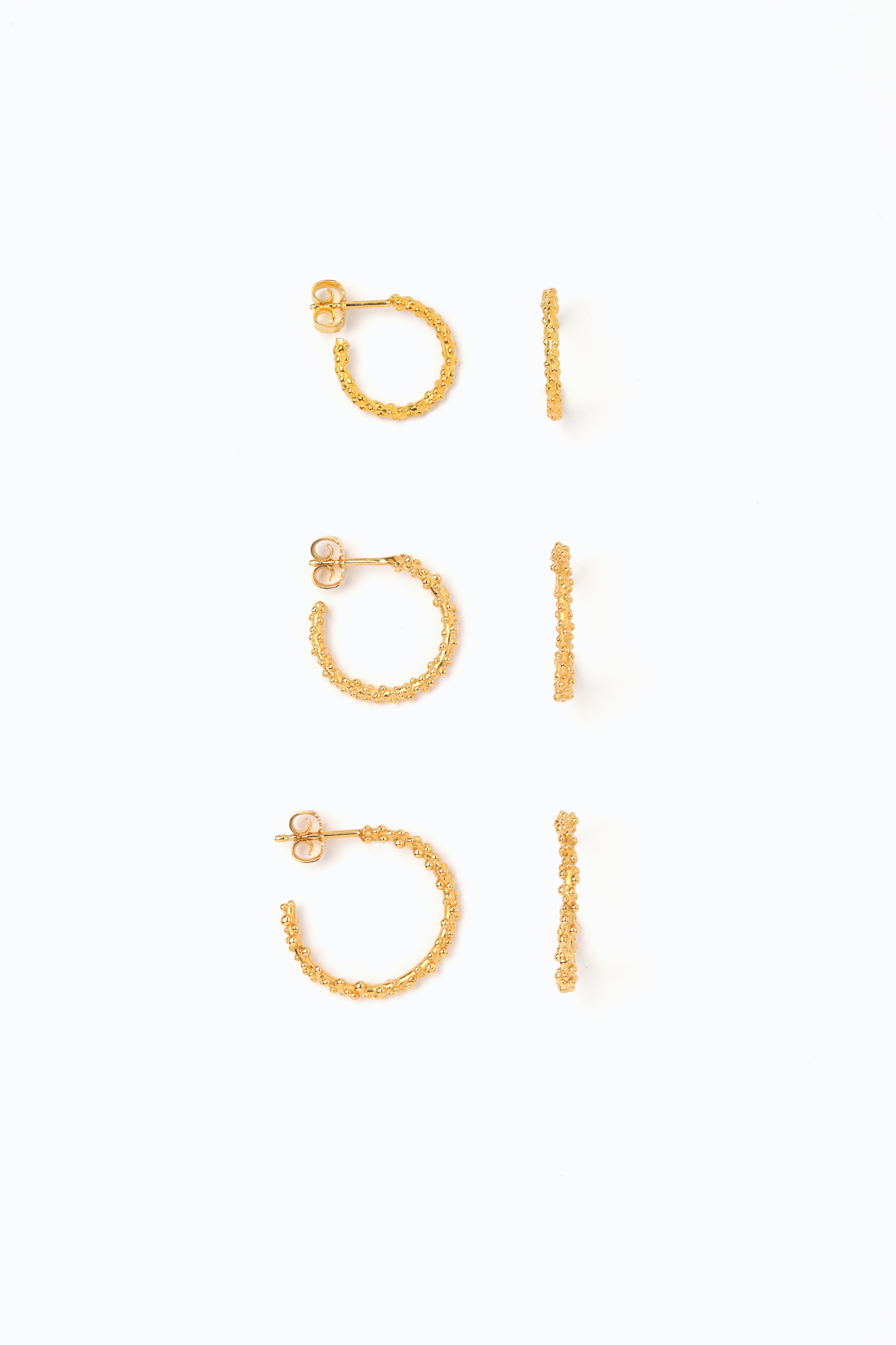 Kreolen handgefertigt aus recyceltem Material und mit Sarah Cosshams charakteristischer Textur aus feinen Champagnerperlen veredelt.