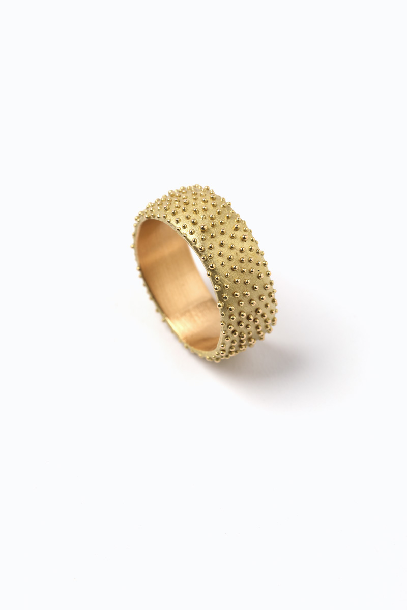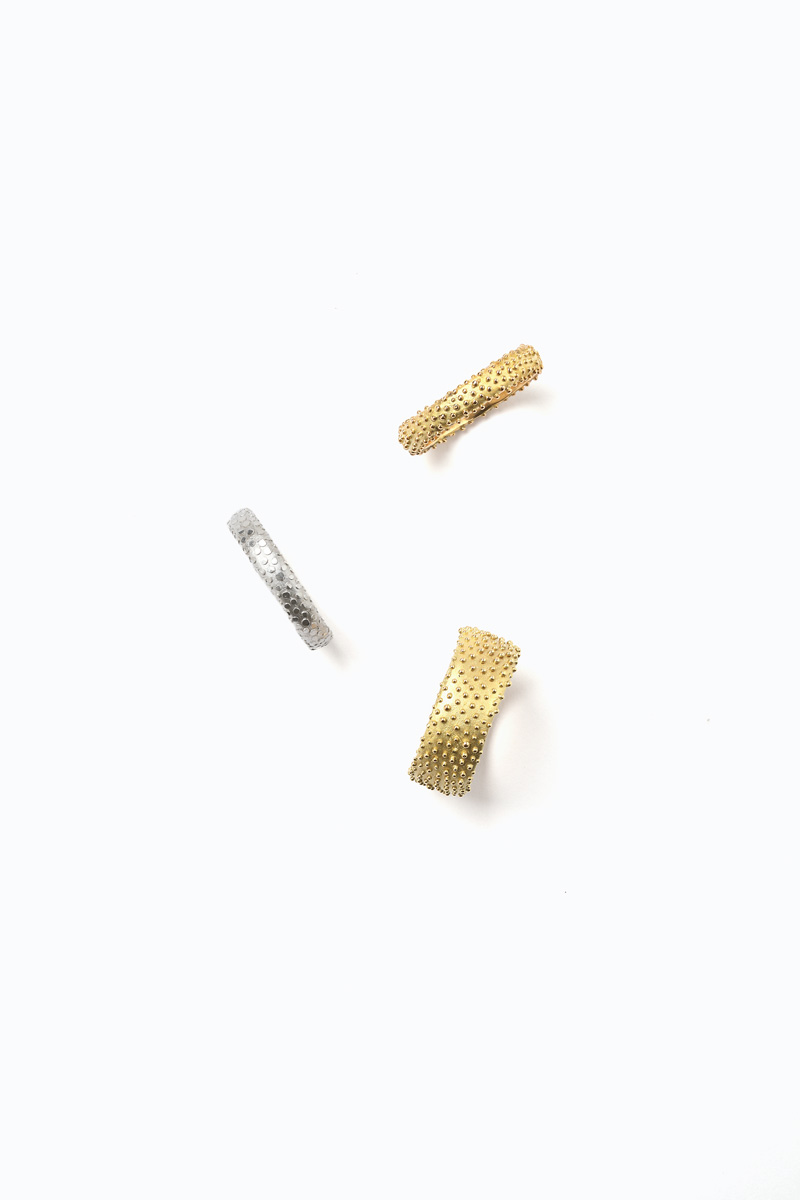 Crafted entirely from recycled material and finished with Sarah Cossham’s signature texture of fine champagne-like bubbles.